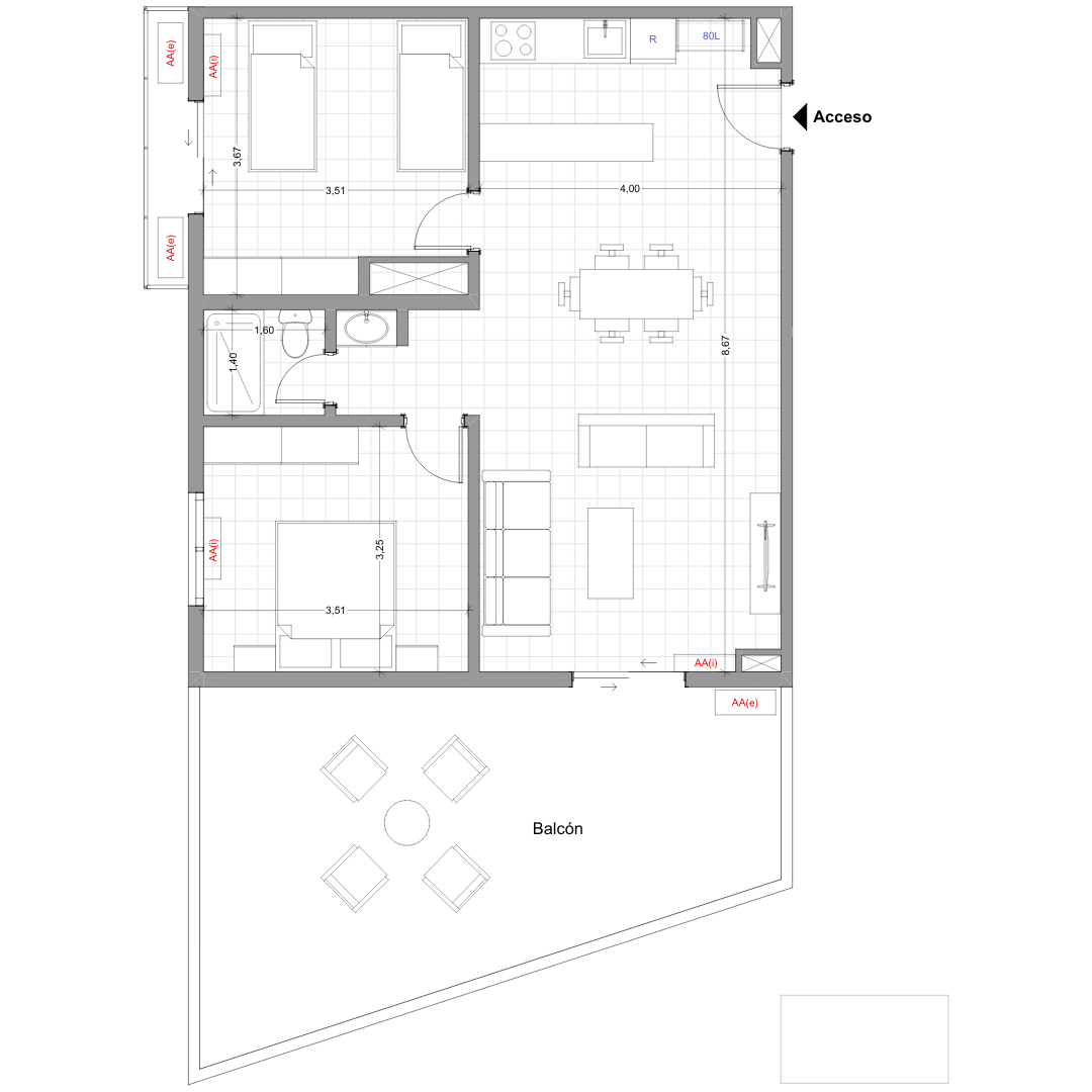 Distribución: Cocina, Sala / Comedor, Dormitorio, Baño y Balcón